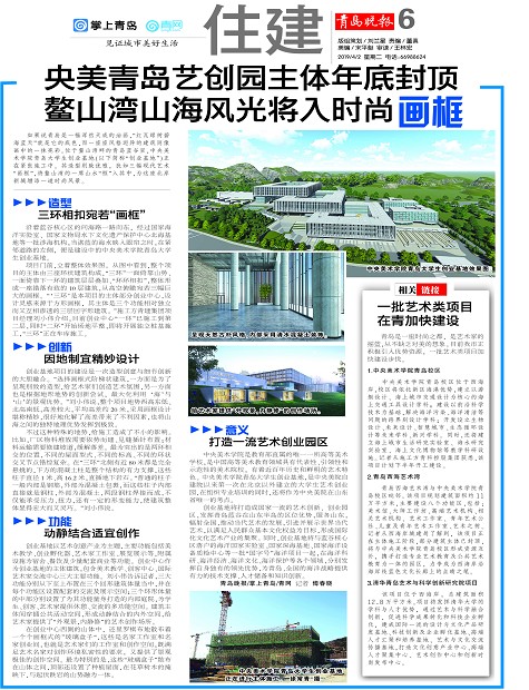 央美青岛艺创园主体年底封顶鳌山湾山海风光将入时尚画框